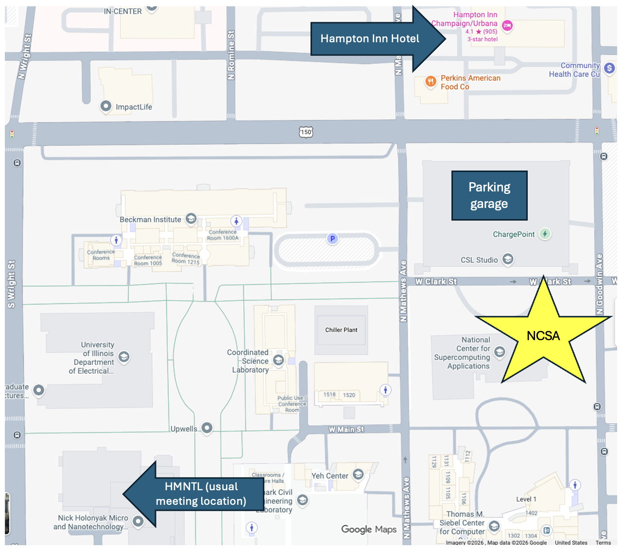 The Spring IAB Meeting will be held on the University of Illinois Urbana-Champaign Campus. The meeting will be held in the National Center for Supercomputing Applications building, room #1030, located at 3102 NCSA Building, 1205 W Clark St, Urbana, IL 61801.